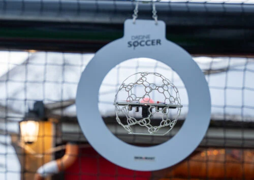 Né en 2016 en Corée du Sud, le Drone Soccer séduit de plus en plus dans le reste du monde. À mi-chemin entre le football et le Quidditch de la saga Harry Potter, chacun pilote un drone-ballon et doit marquer des points en passant à travers un anneau suspendu dans le camp adverse. Les matches ont lieu dans une arène, et les télépilotes s’affrontent par équipes.